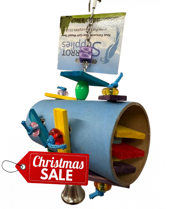 It’s pre-filled with lots of goodies for your Parrot to find, including wooden discs but you can fill it with other goodies too, for your Parrot to enjoy finding.