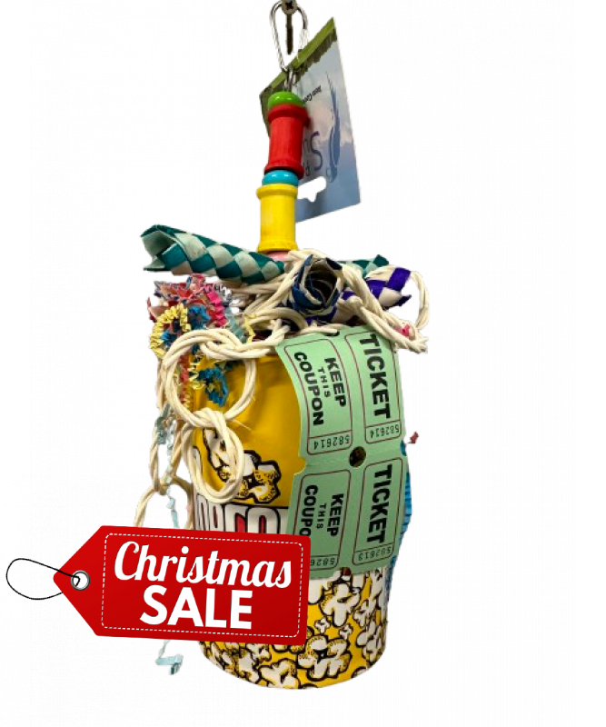 The Parrot-Supplies Cinema Time Popcorn Toy is their ticket to fun-filled entertainment starring various textures to get their spirits soaring. A toy like this speaks to their beak as it helps alleviate boredom and provides stimulation for your feathered friend who instinctually craves to pick and pull for food.
