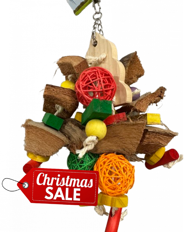 The Parrot-Supplies Toys Coconut Chunky Monster is suitable for Small & Medium Parrots, e.g. African Greys and other Similar Sized Birds.