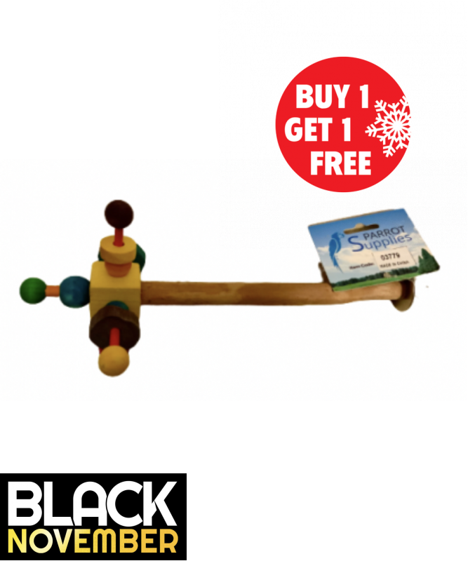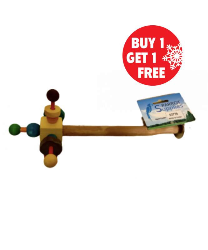 The Wooden Twirler Perch Spinning Parrot Toy is designed to fit most Parrot cages, and is designed around a natural wooden perch, which exercises your bird's feet.