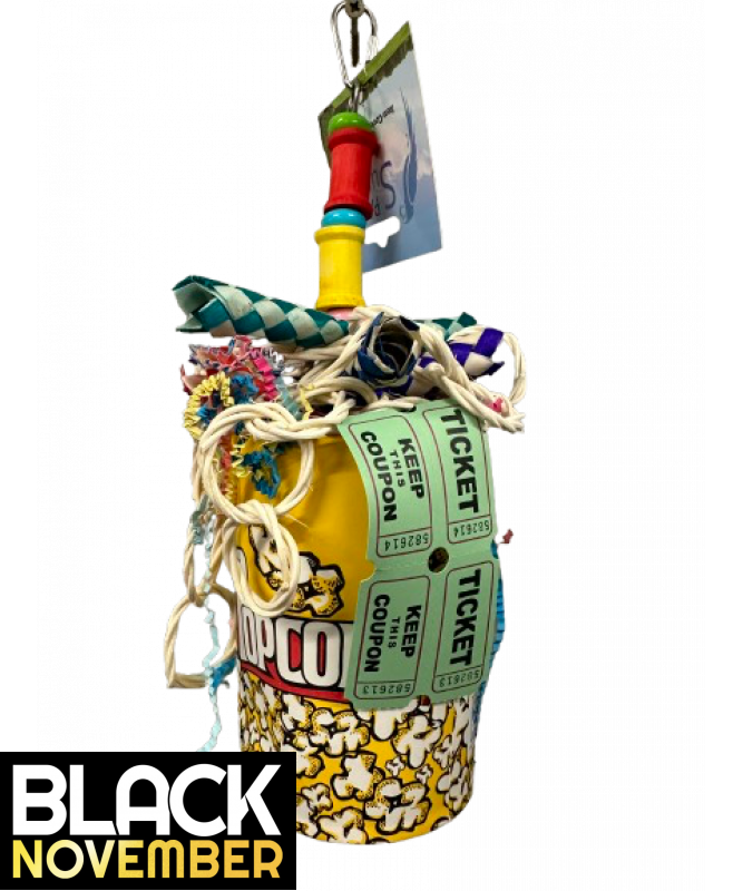 The Parrot-Supplies Cinema Time Popcorn Toy is their ticket to fun-filled entertainment starring various textures to get their spirits soaring. A toy like this speaks to their beak as it helps alleviate boredom and provides stimulation for your feathered friend who instinctually craves to pick and pull for food.